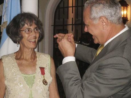 EUNICE LUCINDA Crompton-Nicholas de Scholefield, local employee at the Embassy of the Republic of Argentina in Jamaica, who served with distinction and dedication for more than 31 years, has received the Order of May of Merit with the rank of Dame.