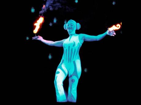 Eventually the show resumed with a group called Light Works. They got a few cheers, but had some mishaps with the items they were juggling, as they were falling at intervals. Lights filled the stage for most of their show, but the biggest applause for the night came when there was a display of the Jamaican flag, the word Kingston, and the logos of sponsors, Tastee and Tropicana.
