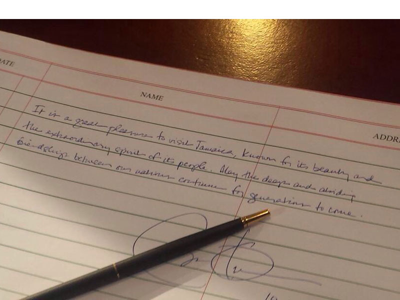 He penned his appreciation in the official guest book at Jamaica House before engaging in bilateral talks with Prime Minister Portia Simpson Miller.