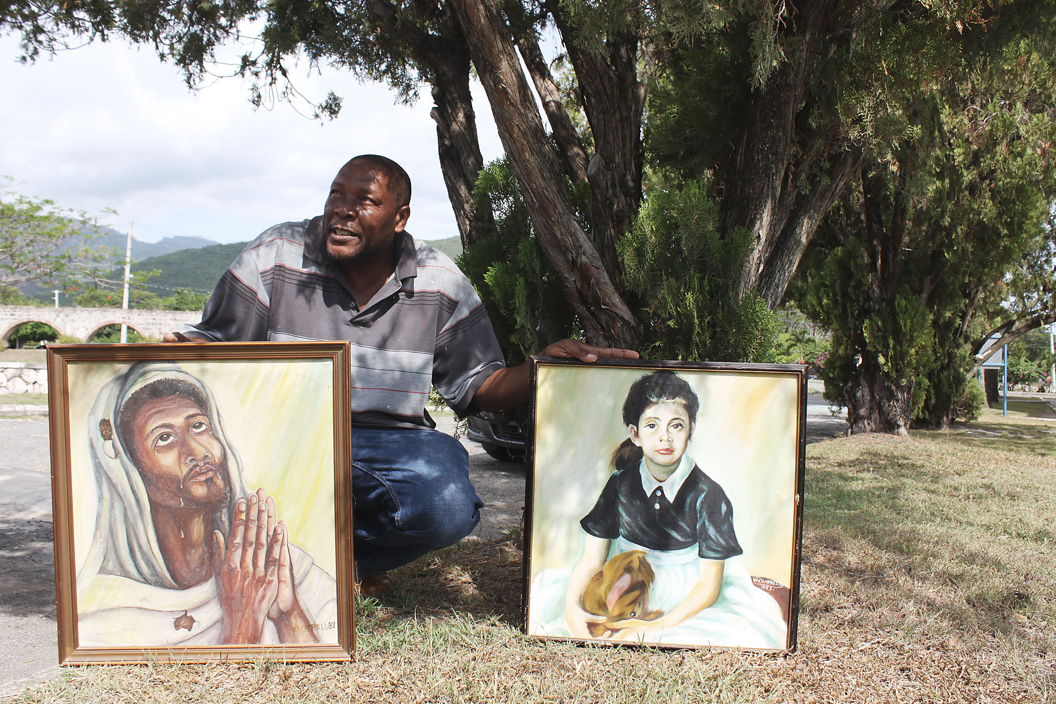 "I am as old as Jamaica," said Webster Campbell, sitting down under a tree in the grassy expanse of the University of the West Indies, dabbing colour from a palette and meticulously painting an arch on the canvas.