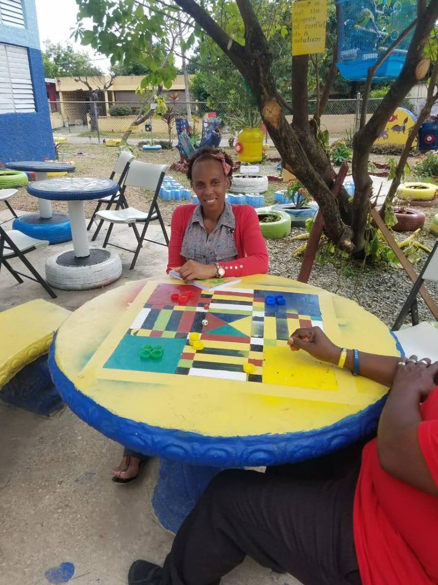 “Glendon, who is one of the more [energetic] types, was very instrumental in making the garden. He planted the flowers, carried the gravel and sand. He watered, swept up, and helped to create the games. He did everything. In doing all this, he became much calmer. He is now always around there taking a five- minute break before classes. He looks after everything,” she said.