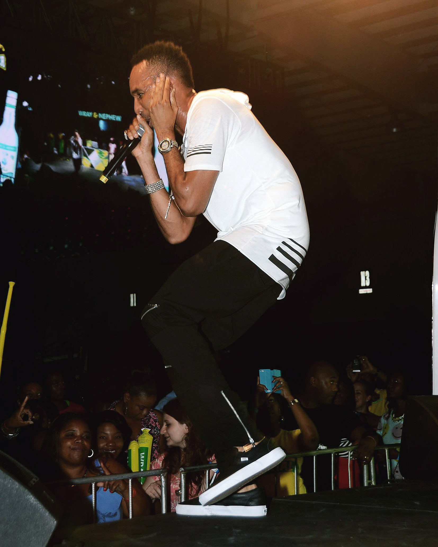 Two of the performers, Cham and Busy Signal, had already seen action briefly, each leading a finalist to the ring. But after the invitation of all into the previously restricted VIP area, which was enthusiastically taken up, Di Unit and ZJ Liquid securing the transition from ring to stage, it was someone who had not been seen that night who opened the action.