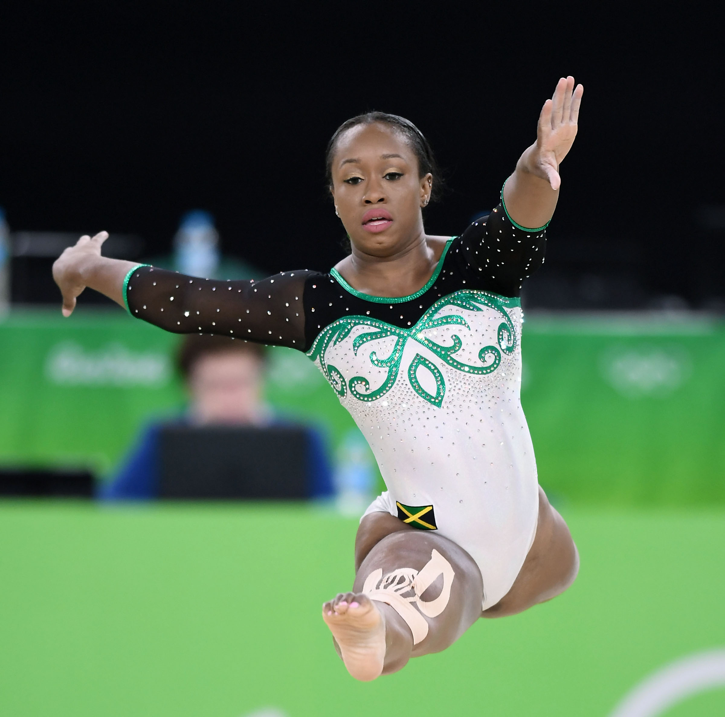 Gymnast Toni-Ann Williams in full flight while competing at the Rio 2016 Olympics.