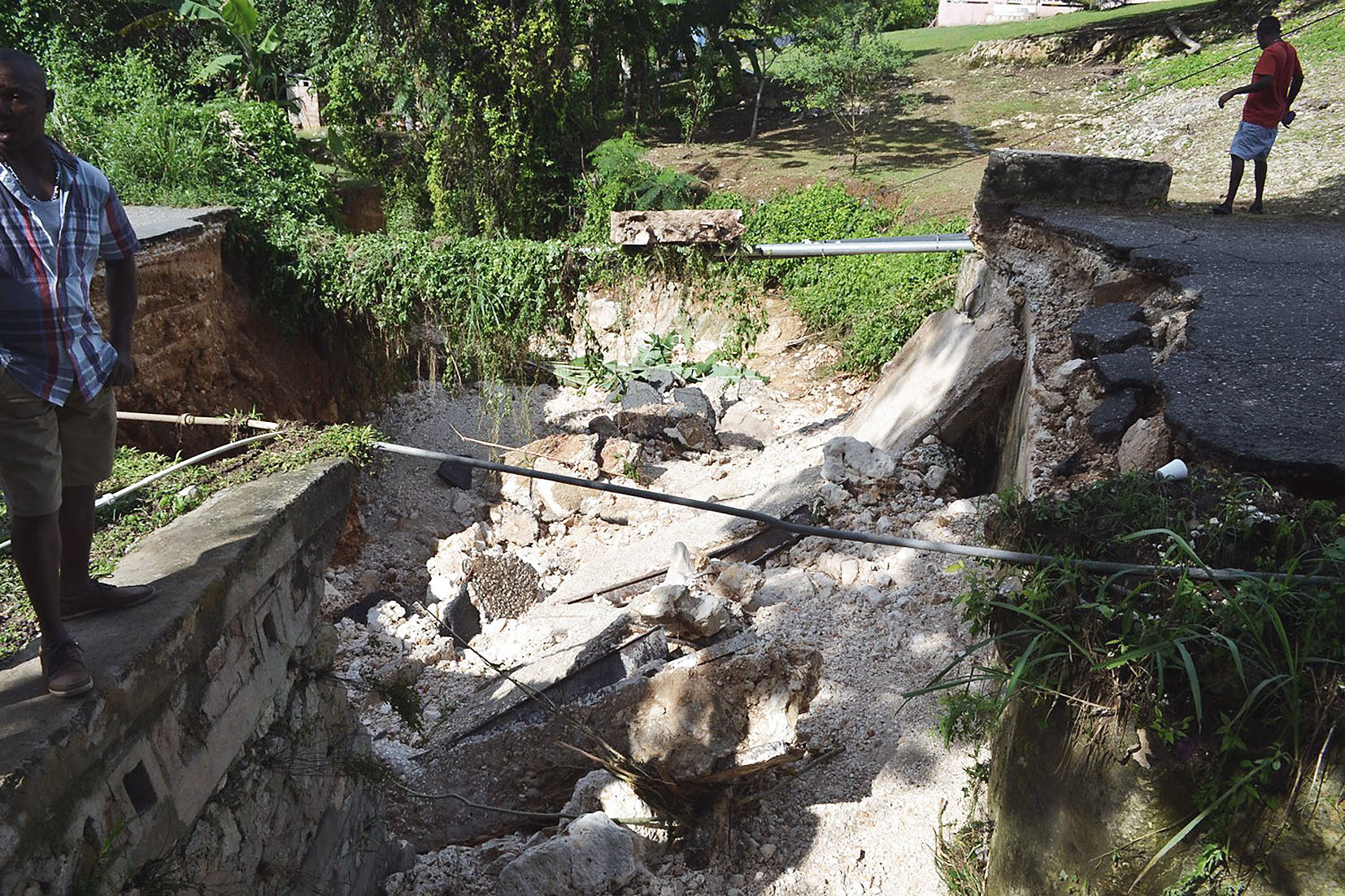 In Dumbarton, residents gathered at the site of the collapsed box culvert, several of them voicing concern over the difficulty they will now face in travelling from their community to Brown's Town.
