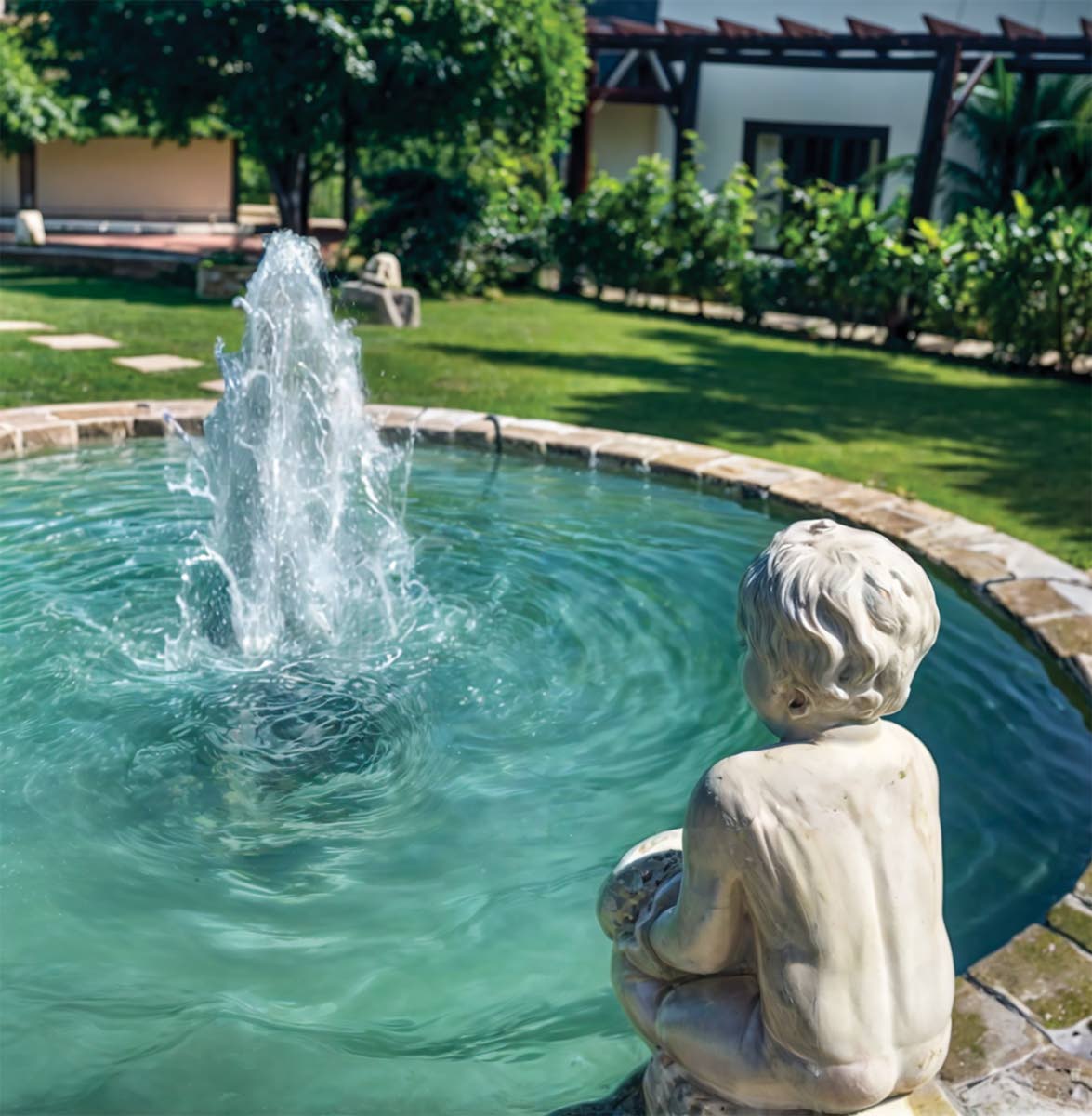 The owner of today’s featured residence, purchased in 2018, impressed as he is with the building itself, prefers to spend quality time in the radically transformed, customised garden. He hired celebrated landscape architect Mark Martin to plan and execute tasteful, hand-crafted feats of horticultural wonder in a picturesque setting, with outdoor, roofless living and dining rooms opening to the sky. Favourable physical and mental outcomes are cultivated here as you experience the botanical dreamscape with three full-time gardeners.
