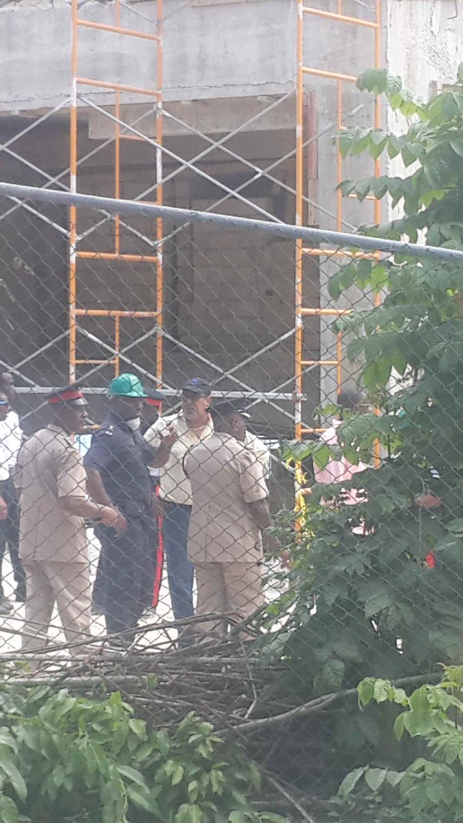 IN PHOTO: Workers removing rubble from the construction site following the collapse of a section of the building this morning - @Lgrandison photo