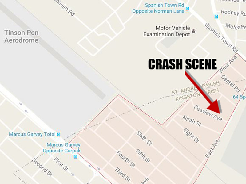 IN PHOTO: This map shows the crash scene in Greenwhich Town, Kingston.