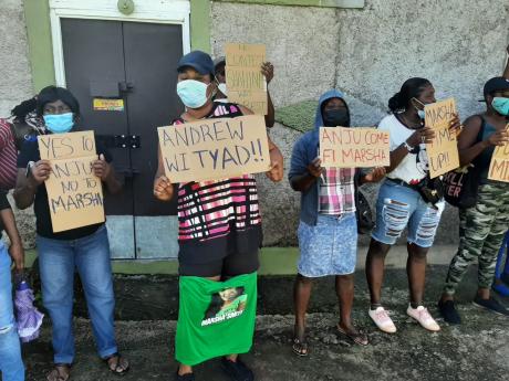 "Andrew come fi Marsha", "Biggest political mistake","If Marsha deh bout wi nah vote", "Waste a vote", "Marsha a stop prosperity" are some of the messages on the placards.