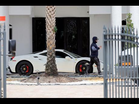Florida Department of Corrections records show he is currently on two-years probation for trafficking stolen property. Reporters at the home could see authorities filling a loading van with goods. The mansion was surrounded by expensive sports cars.