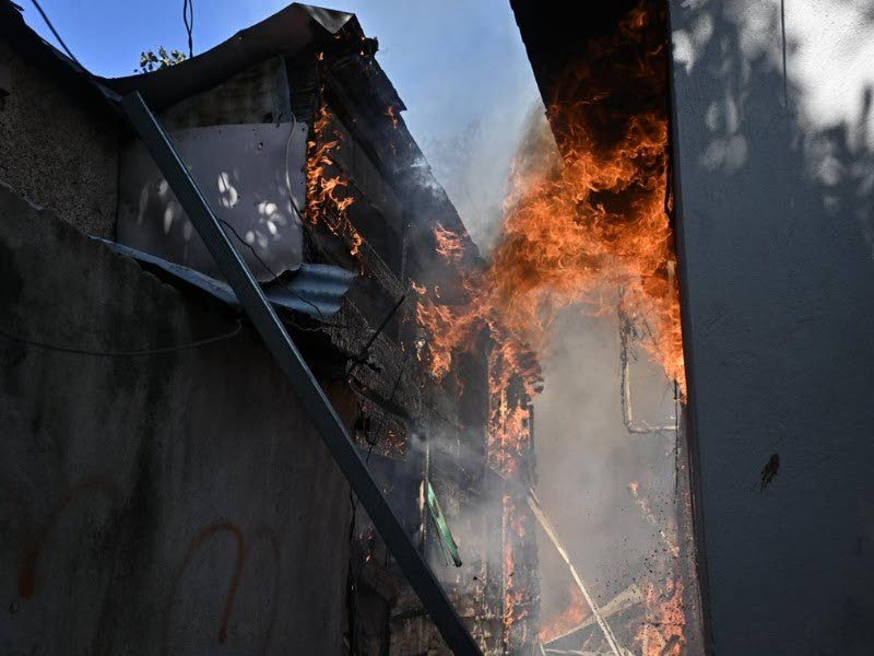 The blaze, which reportedly started around 8:30 a.m., engulfed four homes.