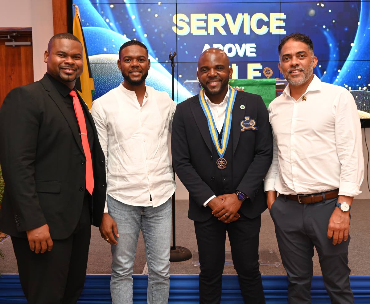 Lemar James (second right), newly installed president of the Rotary Club of Montego Bay, is flanked by Jamell Rayan Robinson (left), the deputy premier and minister of physical planning and infrastructure development, Turks and Caicos Islands; Montego Bay