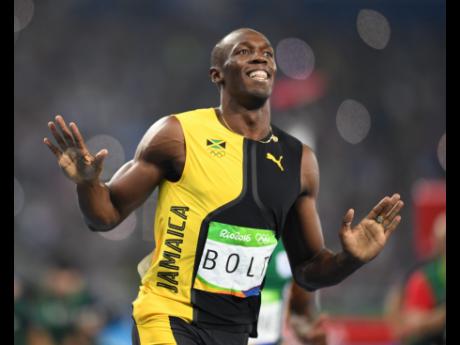 Usain Bolt celebrates winning the men's 100 metres final inside the Olympic stadium during the athletics competition at the 2016 Olympics in Rio de Janeiro, Brazil, yesterday.