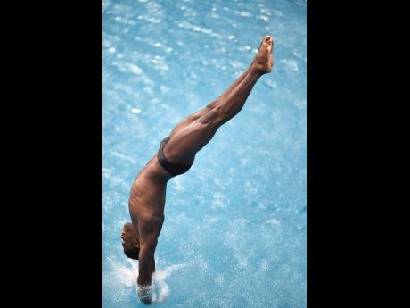 Jamaica's Yona Knight-Wisdom is frustrated after going out at the first round in the men's 3-metre springboard diving event at the FINA World Championships in Budapest, Hungary, last Wednesday.