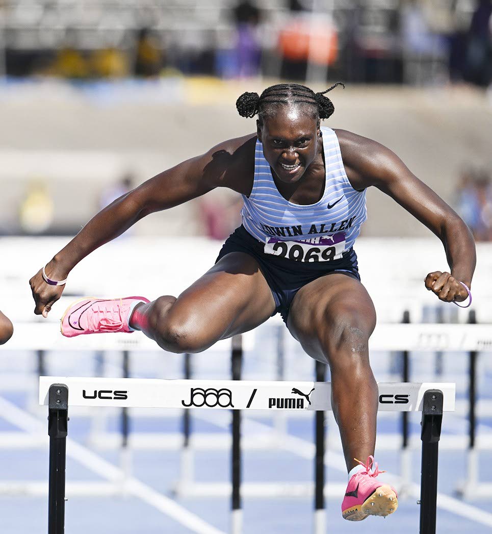 Santae Wilson won the Class One 100m hurdles, winning in 13.91 - her third consecutive sub-14-second performance.