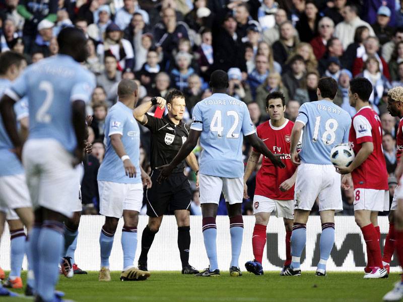But City had almost scored in the opening minute when David Silva flicked Carlos Tevez's right-wing cross toward the back post, only for Fabregas to smother the ball. Moments later, Fabregas played the pass that released Chamakh when Boyata scythed him down just outside the area.