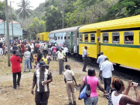 Residents of Bog Walk, St Catherine, converge on the local train station for a closer view of the reconditioned five-coach train on its test run from May Pen, Clarendon, to Linstead, St Catherine, on Saturday, April 18.