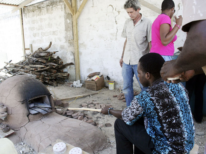 Participants in the glass bead-making course at the HEART Trust/NTA's Vocational Training Centre in Falmouth fill clay moulds with powdered glass to be placed in the kiln for the heating process. The three-week course was conducted by Professor Owusu.