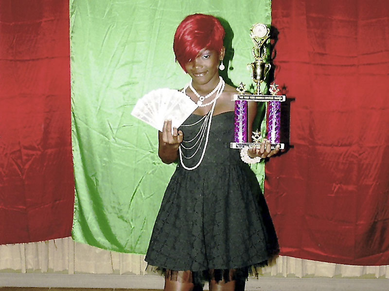 Jade-Ann Sterling, a 14-year-old student of Irwin High School in St James, displays her $20,000 cash prize and first-place trophy for winning the 'Copy the Stars Talent Show', at The Wexford Hotel in Montego Bay on February 4. Jade-Ann, who portrayed pop singer Rihanna, gave a scintillating performance to win the title.- Contributed