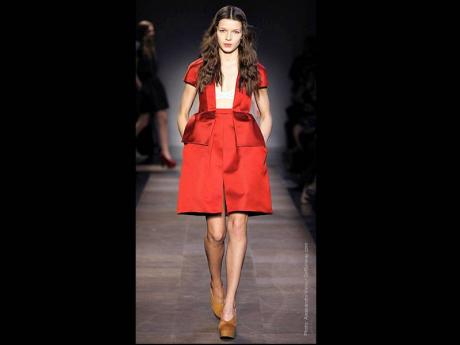 Refer to Carven's nipped in, high-waist, cherry-red satin dress; Stella McCartney's super-curved waist-cut jackets, Hakaan's shiny metallic body-con dresses and Lanvin's plum-coloured turtleneck sweater. These are all great examples of creating the illusion of the hourglass figure. Also refer to Peter Pilotto's two-piece suits that hug the thighs and draw attention to your waist by completely sucking in to highlight those curves while trimming a few inches from the sides. To a certain extent, it's pretty much a woman's ultimate fashion trend dream. Just think about it: a trend that allows a woman to be a woman and trims in and cuts out the sections that you don't want instead of going under the dreaded knife.