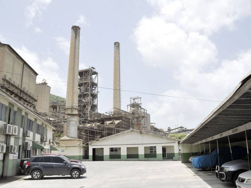 A view of the Caribbean Cement Company's plant at Rockfort, showing smoke stacks of the two kilns in operation. At left is the stack of the new 100,000- ton-a-year kiln activated by the governor, Sir Kenneth Blackburne. A champagne party marked the occasion.