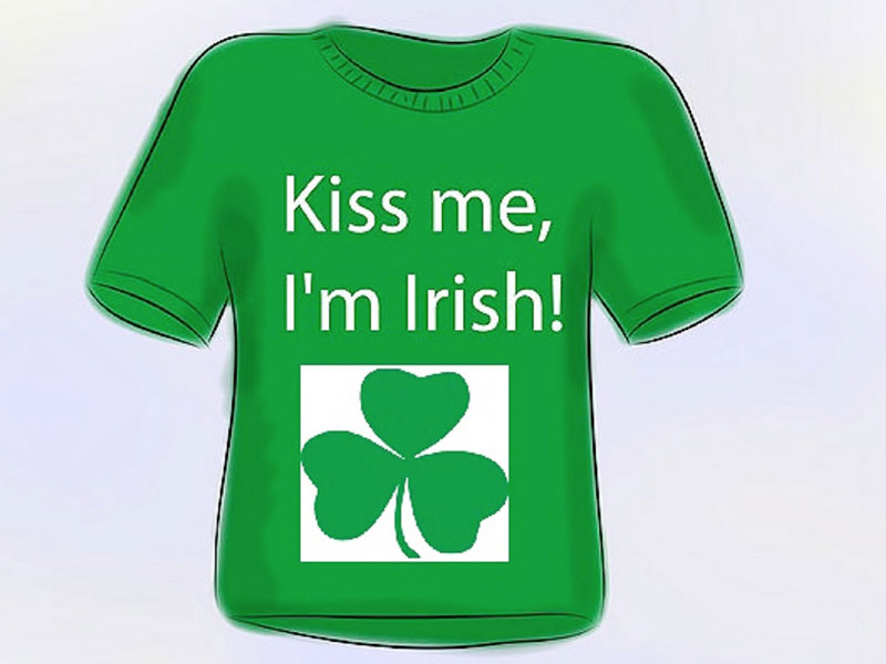 If you're working on St Paddy's Day, incorporate a little green into your work attire. Try a green-striped polo or collared shirt, a green or shamrock-dotted tie. If you are out on this day an all-green T-shirt or one with an Irish-related saying such as 'Kiss me, I'm Irish!' will do.