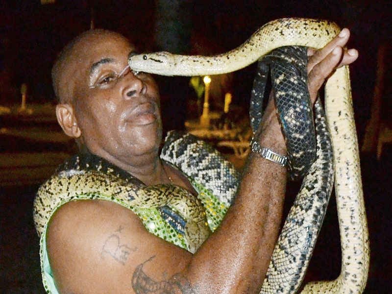Zapata takes his snake dancing and nail dancing acts to the Jerk Festival on Independence Day, Wednesday, August 6, at Turtle River Park in Ocho Rios.